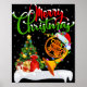Xmas Tree Lights Santa Hat Musical French Horn Chr Poster