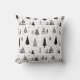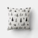 Xmas Trees & Snowflakes Black and White Pattern Throw Pillow