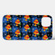 An illustration of a christmas tropical yellow orange fish under the ocean with bubbles on a blue black chequered buffalo pattern background. This iphone 13 case with a cute cartoon design is a gift idea for xmas lovers, fishing lovers and snorkelling lovers.