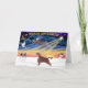 The sun rises revealing three wise men, a Christmas dove and a Irish Setter. The words say Peace on Earth. A wonderful Christmas message that also includes your dog in the celebration of the season.