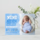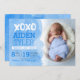 Sweet baby announcement. XOXO watercolor splash in baby blue. Hugs and kisses.