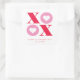 Perfect for goody bags and gift wrapping. This modern square valentine's day sticker has rounded corners, large alternating red and pink xoxo type with white hearts in the centre of the o's on a white background.