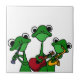 Hilarious tree frogs playing musical instruments cartoon. One is playing the saxophone, one is playing the guitar, and the other is playing the clarinet. Unique and fun and a great gift idea. Full of personality. Can also add custom text and change background colour when ordering.