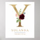 Y Letter Monogram Name Marsala Floral Nursery Poster