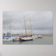 Beautiful wooden yacht Barn Owl featuring free standing wooden masts and wooden wishbone booms.