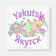 Beautiful hand-rendered colourful map of the Russian Federation with Yakutsk city location marked with a flag. City name also in Russian. Unique Russia family or adoption gift for families with children from Yakutsk of the Sakha Republic (Yakutia). Designed by Hendrika of www.RedThreadMaps.com