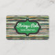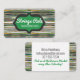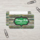 Fun colourful yarny strings background on this business card for a knitter, knitting or crochet crafts, or homespun yarn, in green and yellow tones.