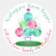 A Christmas tree made out of balls of colourful yarn on this cute "handmade with love" Christmas to/from sticker for knitting and crochet crafts projects.