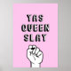 This artwork features a cartoon style poster with the quote "Yas Queen Slay” and raised clenched female fist.