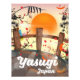 Yasugi Japan Blossom bridge and garden travel poster in a beautiful orange setting sun landscape.