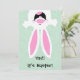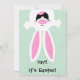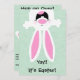 A fat, white, long eared, jolly bunny hangs upside down from this delightfully colourful invitation. He can't sit still. He is all over the place. Hopping everywhere, in every direction. See if you can catch the Easter Bunny when he hides all the candy filled eggs for you and all the little children. On this sweet invitation you can customize the text on both sides.