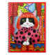 C'est un hommage à l'artiste Yayoi Kusama, bien connue pour son regard neuf sur les pois, dépeinte ici comme un chat mignon. Vous pouvez customiser la couleur arrière - plan de ce carnet si vous le souhaitez. Il est montré ici sur rouge, mais il serait aussi très agréable sur d'autres couleurs. Cette image est disponible sur d'autres produits dans mon magasin Zazzle. Un grand cadeau pour un être cher.