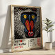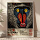 A vivid, stylized mandrill portrait inspired by Yayoi Kusama’s signature dots and bold patterns. With striking colors and a retro Japanese exhibition layout, this eye-catching design adds artistic flair and wild personality to any wall.