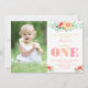 Floral 1st Birthday Photo Invitation cards for girl in sunshine summer colours such as yellow, coral and pink