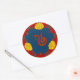 The image of a snake is a common theme in Chinese Art. This round sticker in deep blood red, navy blue, yellow & gold, blends Oriental themes & Art Nouveau for a strikingly original and beautiful design by Leslie Sigal Javorek.