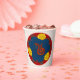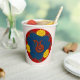 The image of a snake is a common theme in Chinese Art. For your party meals, this paper cup in deep blood red, navy blue, yellow & gold, blends Oriental themes & Art Nouveau for a strikingly original and beautiful design by Leslie Sigal Javorek.