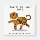 This Year of the Tiger design is a running tiger the Chinese word for "tiger " written among his stripes and the previous years of this zodiac sign written underneath for reference. This all new artwork is available only from Mozartini and is a great way to celebrate and remember the year 2022. This item makes a great new years gift especially for those born under this zodiac sign in the years 1926, 1938, 1950, 1962, 1974, 1986, 1998, and 2010.