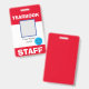 Make sure your staff is easily identifiable with this bright red id badge. Customize it with your school logo.