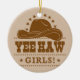 Yee Haw Girls Cowgirl Hat Design Ceramic Ornament