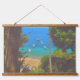 This Wood-Topped Wall Tapestry features vivid colours, crisp lines, and a rustic open wooden frame. While the beautiful, stained wood adds a unique feel to each piece, the vibrancy of the print can transform any wall into a visual masterpiece.