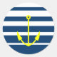 Yellow anchor stickers with blue and white stripes. Cute maritime envelope sealers / labels for nautical wedding or baby shower invitations. Personalizable with monogram name initials.