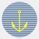 Yellow anchor stickers with navy blue stripes. Cute maritime envelope sealers / labels for nautical wedding or baby shower invitations. Personalizable with monogram name initials.