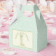 Create a special custom touch for bridal showers with these sweet personalized party favour boxes. These small treat boxes feature a yellow floral patterned rain boot filled with a bouquet of spring blooms and light green text against a cream or ivory coloured background with a coordinating all over light aqua blue pattern. Use the fill-in-the-blank template fields to easily customize these party supplies with your party details. Find coordinating products and party supplies in the Spring Rain Boot Shower collection from Asterisk Designs.