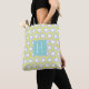 Yellow and Aqua Geometric Pattern and Monogram Tote Bag