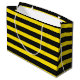 This silly gift bag design features a striped pattern coloured yellow and black, inspired by the colouring of bumble bees. A gift bag like this could be used when giving gifts to somebody who likes honey bees. It might also be useful at a bumblebee-themed event. [~Z0000315]