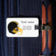 A great luggage tag that will let you stand out from the crowd. It features a graphic of a yellow and black football helmet on the front and back. You can customize the black text. Perfect for your luggage or football bag.