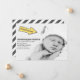 Modern birth announcement with a yellow and black stripes arrow sign. Fun and unique birth announcement yo give your family and friends.