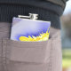 Yellow and blue hip flask
