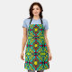 This all-over print apron has a yellow and blue pattern that is sure to add a bit of whimsy to your kitchen. Made of a durable material, this apron is machine washable for easy care.