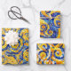Yellow and Blue Starry Night Mosaic Glass Patterns Wrapping Paper Sheet