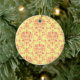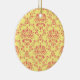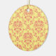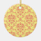 Yellow and Cranberry Pink Damask Ceramic Ornament