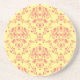 A classic, elegant damask design pattern in pastel buttery yellow and cranberry pink.