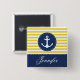 Yellow and Dark Blue Stripes Anchor With Name 2 Inch Square Button