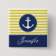 Nautical button with yellow and navy blue stripes, customizable text and anchor are white.
