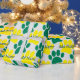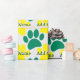 Yellow and Green Dog Paw Print Custom Name Wrapping Paper