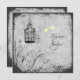 This pale yellow and grey wedding invitation has a pair of love birds and an ornate birdcage on a grungy floral background. If you require any matching items please email your request to niteowlstudio@gmail.com.