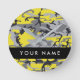 Yellow and Grey Camouflage Your name Personalize Round Clock