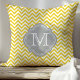 Yellow and Grey Chevron Monogrammed Throw Pillow