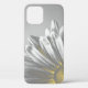 Protect your smartphone with a pretty Yellow and Grey Floral Highlights Cell Phone Case.. This flowery custom cover features a digitally enhanced black and white floral photograph of daisy flower blossom petals with a yellow tint added and a silver grey background.
