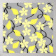 Flower pattern. Floral design in sunny shades of yellow. Small light yellow flowers, with bright sunny yellow leaves and a grey background.