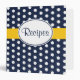 Navy blue and white dots with a bright yellow accent give this recipe binder retro style. Use this empty binder as a recipe organizer, cookbook, recipe book, recipe binder, etc...The design is from original art.