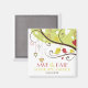 A cute and whimsical illustrations of two yellow and red lovebirds perched on a heart filled tree with heart strings. This save the date magnet has a matching wedding invitation.