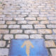 Yellow arrow marking the Way of Saint James (Camino de Santiago), Logroño, La Rioja, Spain