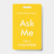 Bright yellow "Ask Me" badges for volunteers, teachers, docents, guides, event organizers for special events, such as weddings, craft fairs, home & garden shows, charitable events, business and corporate functions. The typography colour is pale ivory which gives this badge a modern look. Easy to customize!