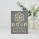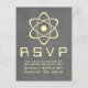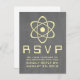 Cute and nerdy Atomic Chalkboard Wedding Response Card featuring a simple atomic symbol in yellow on a chalkboard look background. This geeky and fun wedding RSVP postcard is perfect for the science enthusiast couple! Easy to customize, simply add the details of your wedding in the spaces provided. Click "Customize It" to find more personalization options.