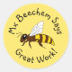 A stripey cartoon honeybee on a yellow background. The text reads "Mx Beechem Says Great Work!" and can be changed for a custom name/message. Ideal for teachers as rewards for students.